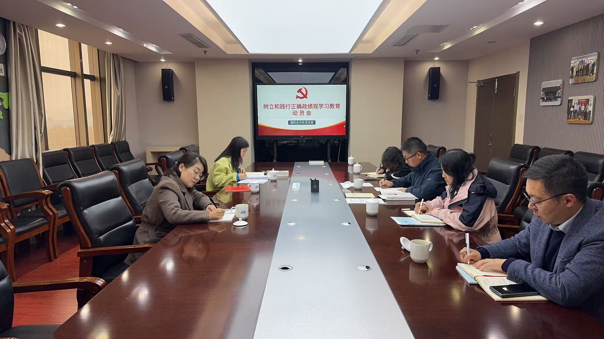 3月31日,国际合作处党支部召开树立和践行正确政绩观学习教育动员会暨党员固定学习日活动。会议由党支部纪检委员庄丽娜主持,全体党员、职工参加会议。